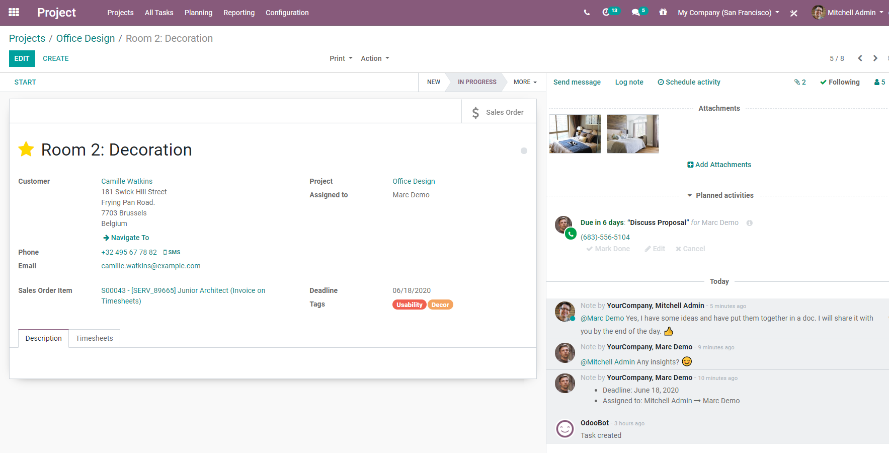 Add quick notes or attach files to any task and stay connected to your team. Forget endless follow-up meetings to keep track of projects. Communicate through the chatter, write in a shared real-time pad, or use live chat - all within a single interface!